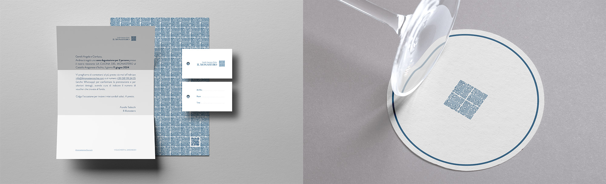 Re-branding de Il Monastero (marchio che racchiude sotto un’unica identità l’albergo, il ristorante, la caffetteria e uno shop all’interno del Castello Aragonese d’Ischia).